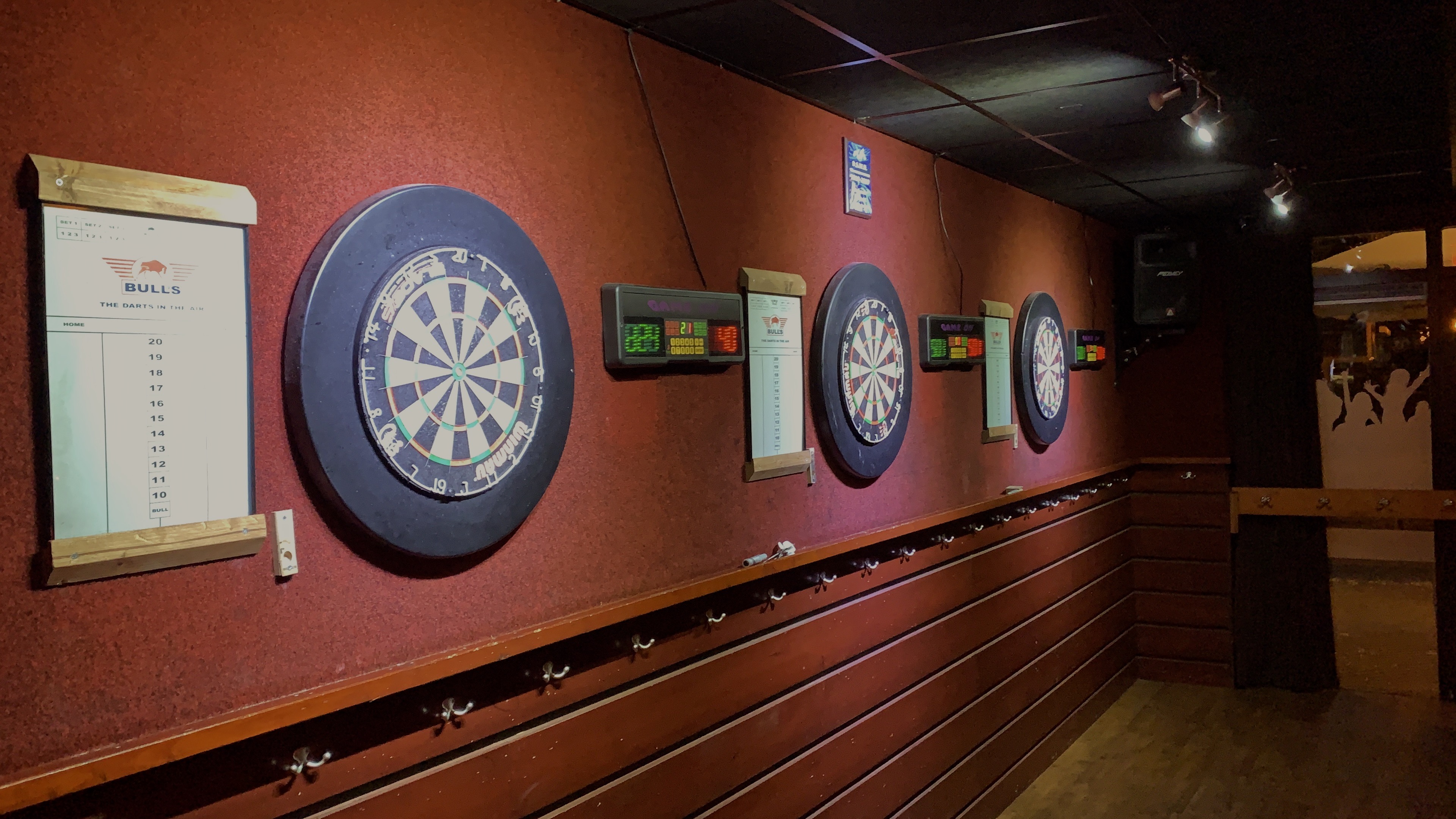 Nootjes/ zoutjes op de bar en 3 ronde bittergarnituur.